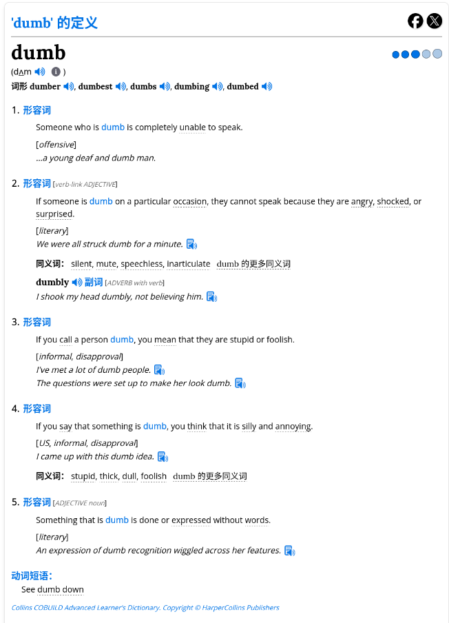 一搜发现 dumb 还真有哑的意思,而且排在愚蠢前,那到底是谁比较愚蠢自不必多说了 qwq